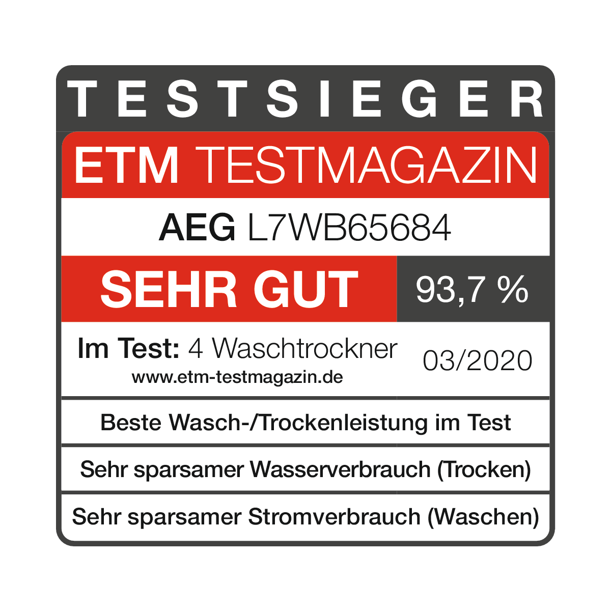 Auffrischfunktion Kindersicherung schonende Pflege 80 kg Waschen 40 kg Trocknen Energiesparend Mengenautomatik ProSteam AEG L7WB65684 Waschtrockner DualSense. AEG L7WB64474 Waschtrockner DualSense schonende Pflege 70 kg Waschen 40 kg Trocknen Energiesparend Mengenautomatik Nachlegefunktion ProSteam Auffrischfunktion Kindersicherung. Der Preis von rund 730 Euro ist für die gute Leistung angemessen.